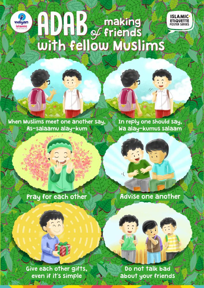 Islamic Etiquette Poster 06 - Making Friends - PNG Hi-Res file.
